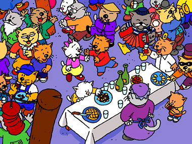 Il s'agit d'une histoire dans un village de chats, pour enfants âgés
